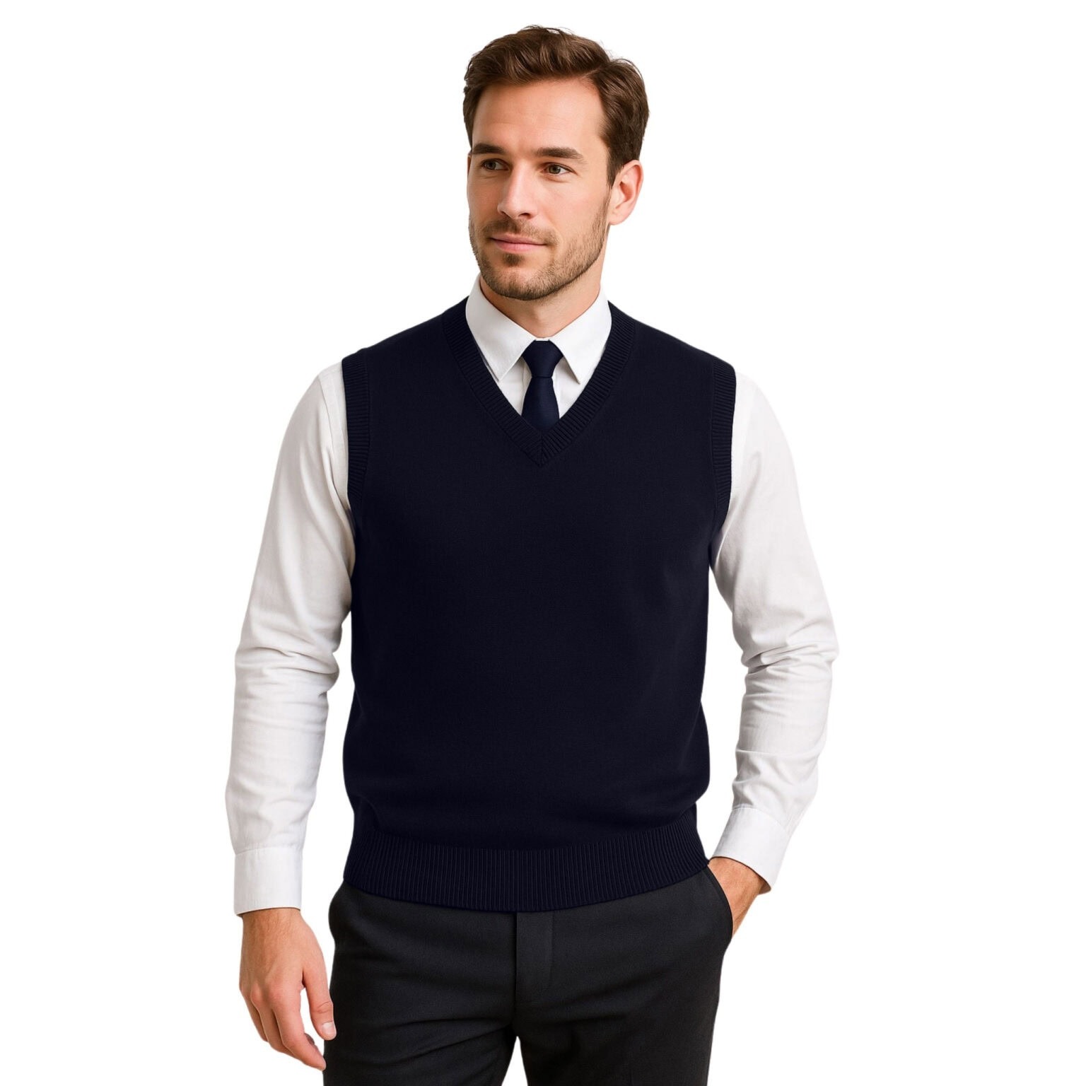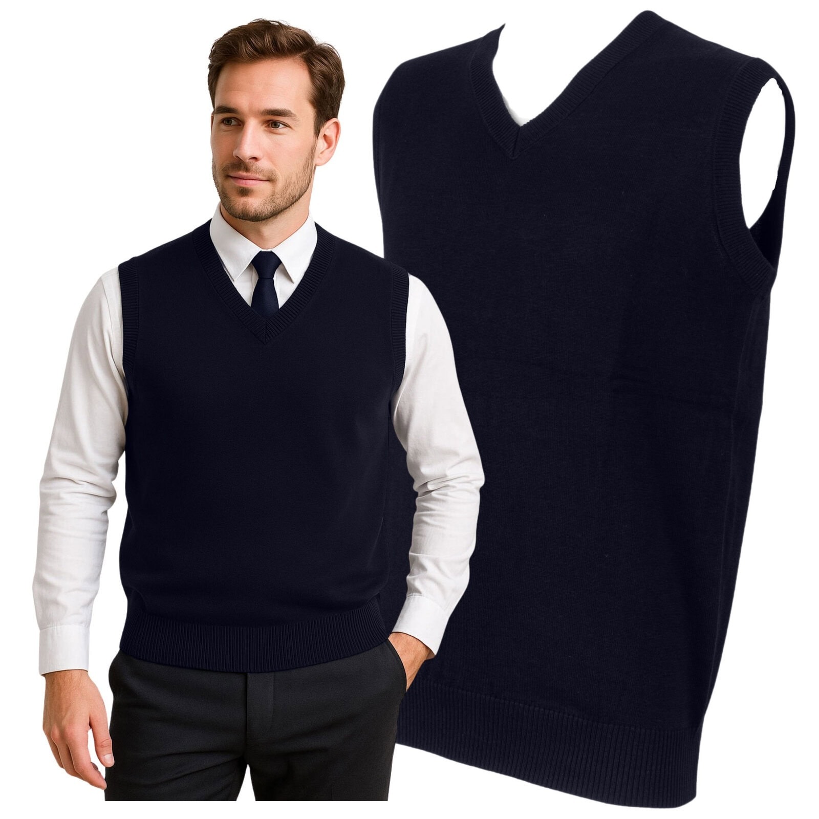 Elegancja i Profesjonalizm: Kamizelka Dzianinowa dla Ochrony (V-neck) – Granatowa