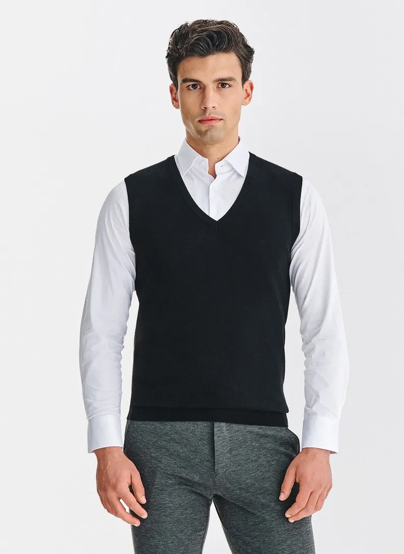 Czarny Sweter Bezrękawnik V-neck – Profesjonalny Wygląd Twojej Ochrony