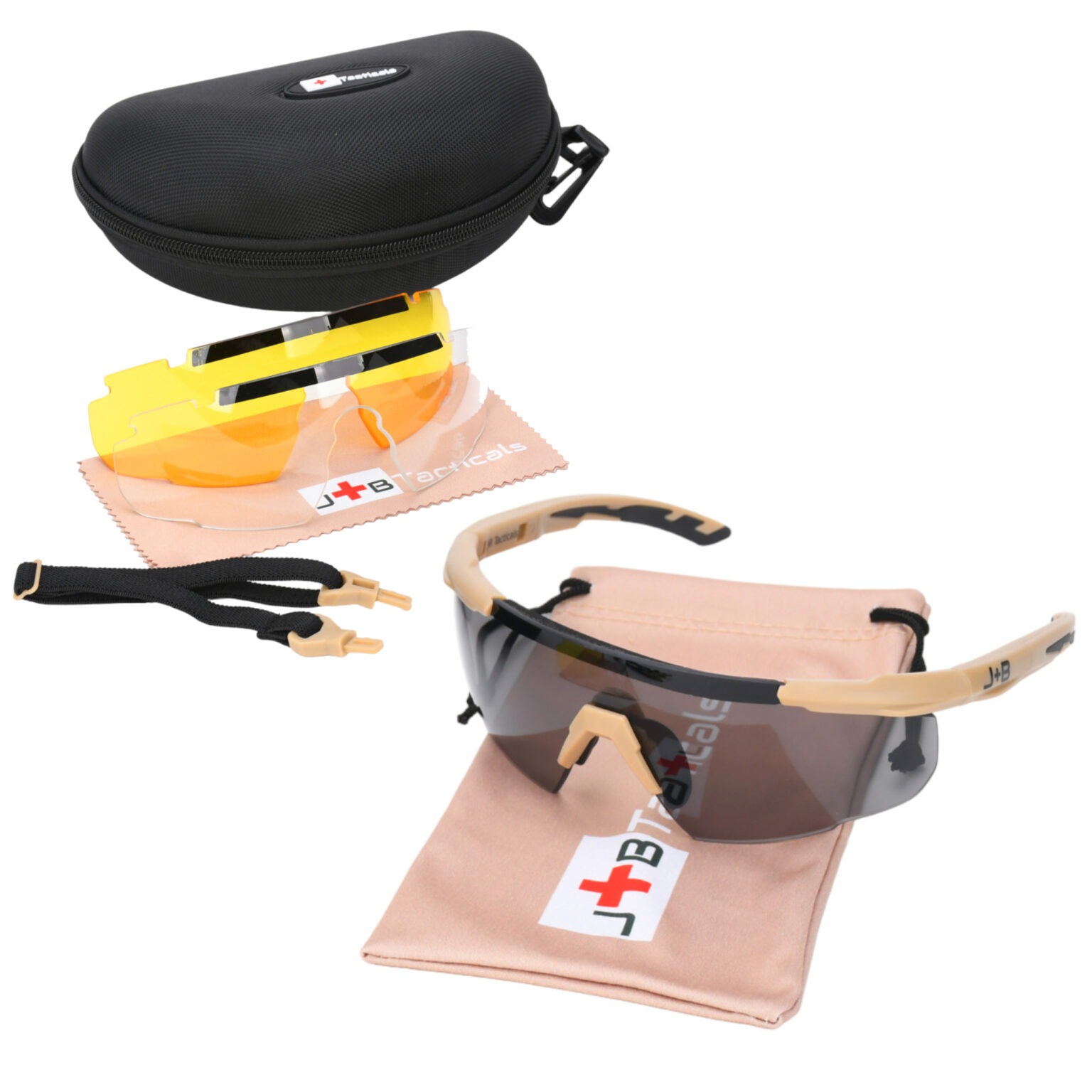 W pracy ochroniarza wzrok to najważniejsze narzędzie. Niezależnie od tego, czy prowadzisz obserwację na nasłonecznionym parkingu, zabezpieczasz nocny event, czy bierzesz udział w dynamicznej interwencji – Twoje oczy potrzebują niezawodnej osłony. Zestaw okularów taktycznych JB Tacticals w kolorze brązowym (Desert) to modułowy system ochrony, który dostosowuje się do warunków Twojej służby w kilka sekund.