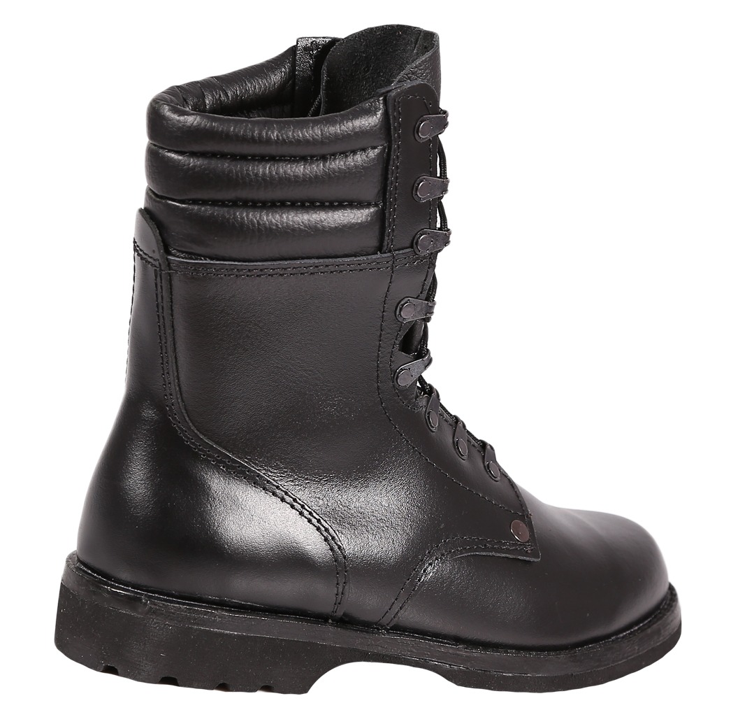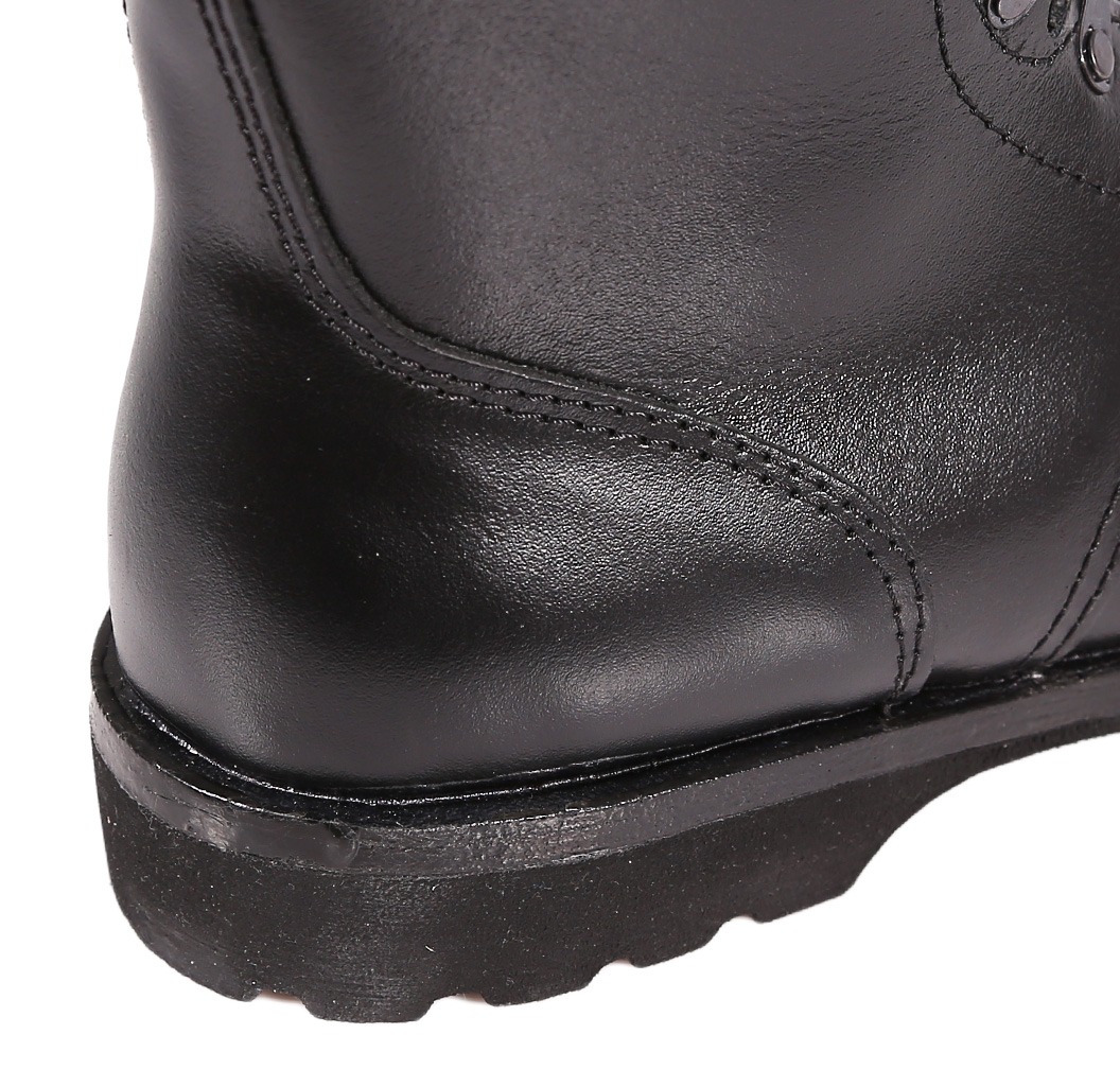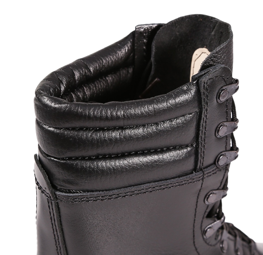 Pełna ochrona stawu skokowego: Wysoka cholewka z dwoiny skórzanej, zakończona miękkim, pikowanym kołnierzem, stabilizuje kostkę. To kluczowe podczas interwencji lub szybkiego przemieszczania się po nierównym terenie – drastycznie zmniejsza ryzyko skręceń i urazów.