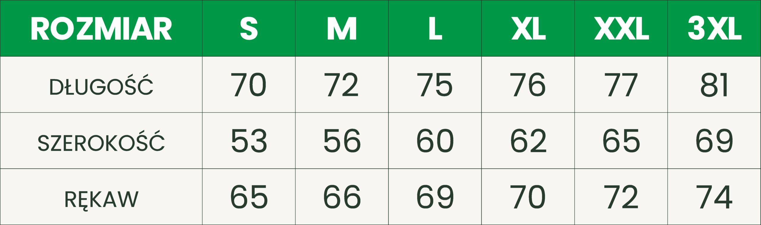 Specyfikacja techniczna dla logistyki (Rozmiary do 3XL i większe):