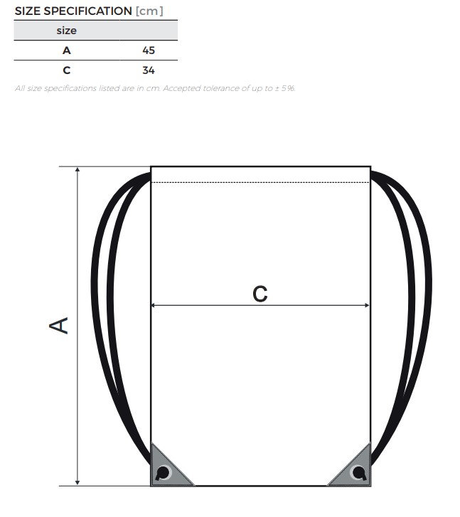 Opis Oxford, 100 % poliester ściągacz do regulacji 2 sznurki poliestrowe w kolorze 01 elementy odblaskowe w dolnych rogach wewnętrzna kieszeń na zamek 20 x 23 cm rozmiar plecaka 45 x 34 cm